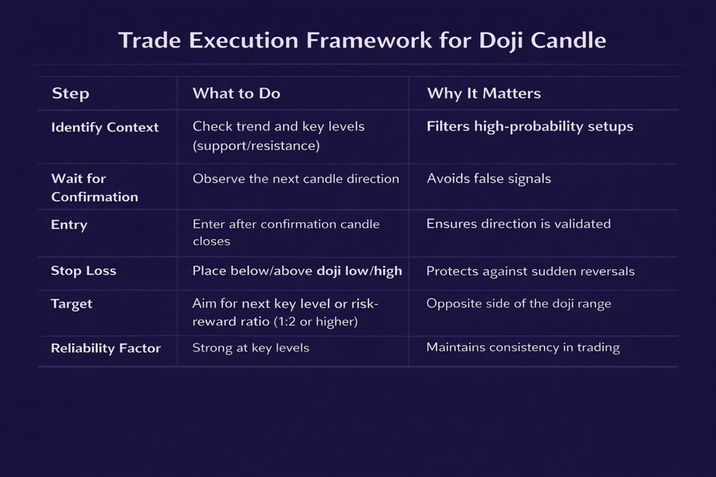 A doji candle becomes useful only when you know exactly how to execute the trade. Most mistakes happen not in identifying the pattern, but in poor entry and risk management.