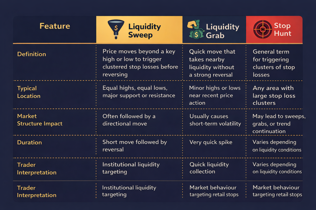 Liquidity Sweep vs Liquidity Grab vs Stop Hunt